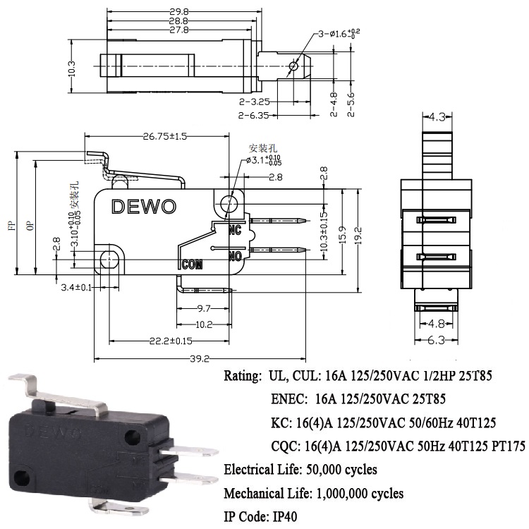 Terminal type:187 quick connect terminal/250 quick connect / Solder terminal/ left side PCB terminal/ right side PCB terminal/ Screw terminal