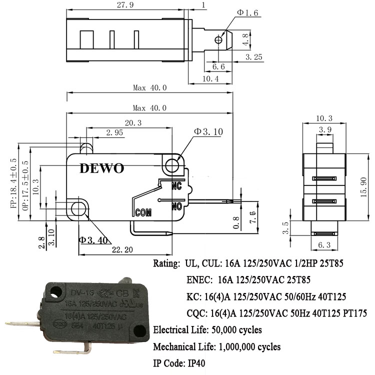 Mechanical life:1,000,000 cycles