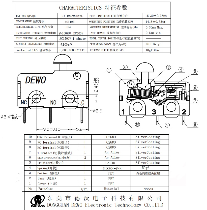 Mechanical life:1,000,000 cycles