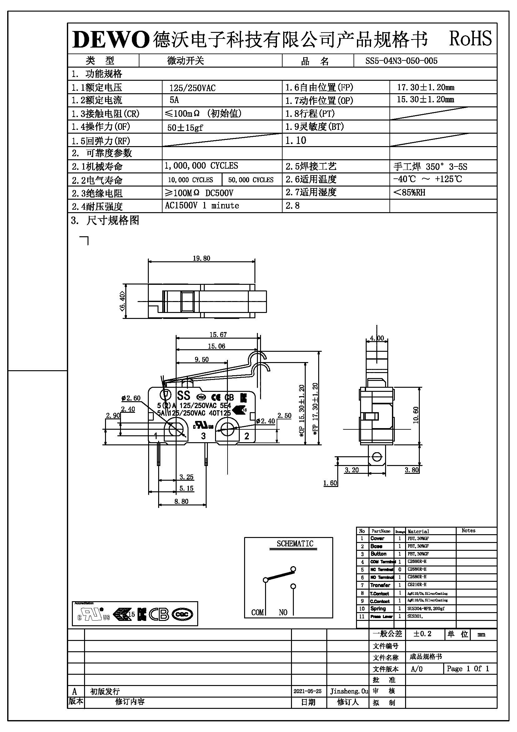SS5-04N3-050微動開關(guān)