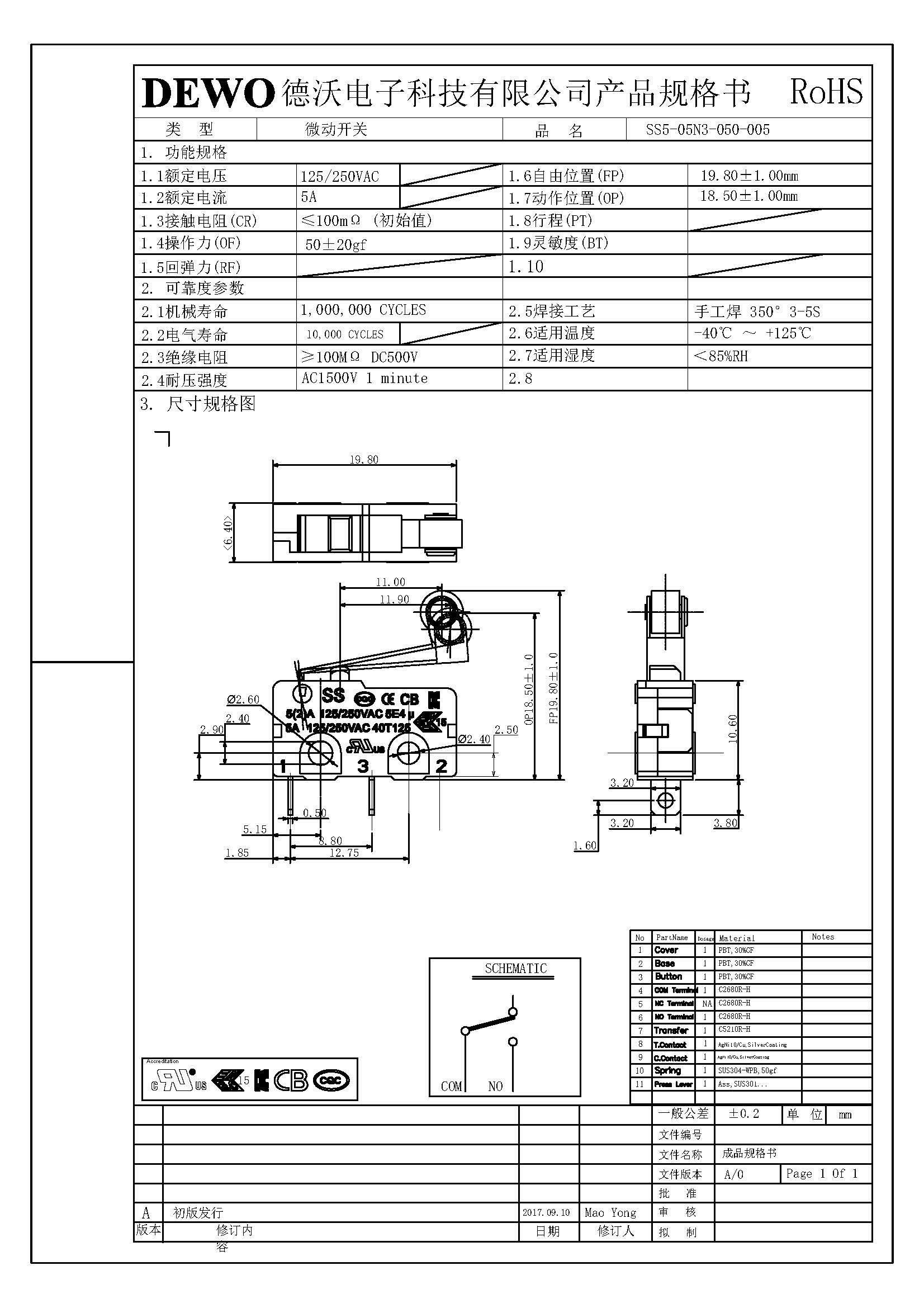 SS5-05N3-050微動(dòng)開(kāi)關(guān)