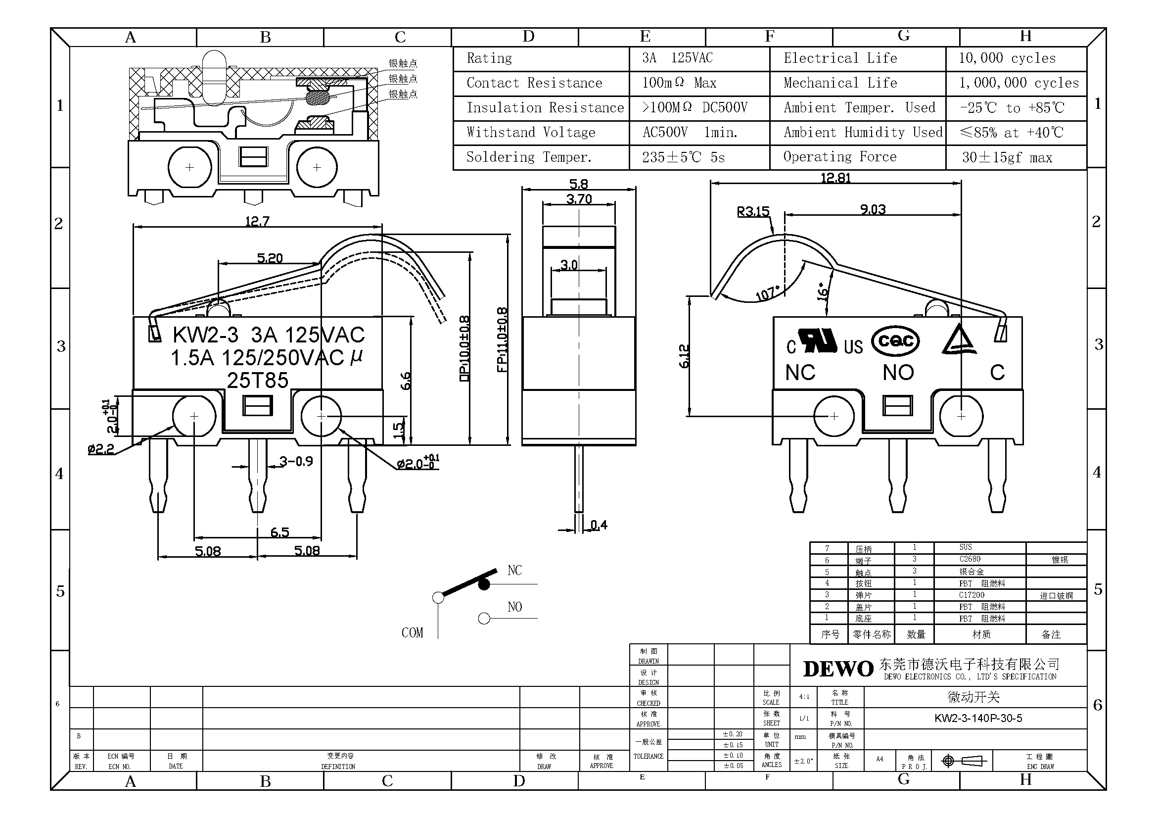 2.觸點(diǎn)材質(zhì):銀合金.