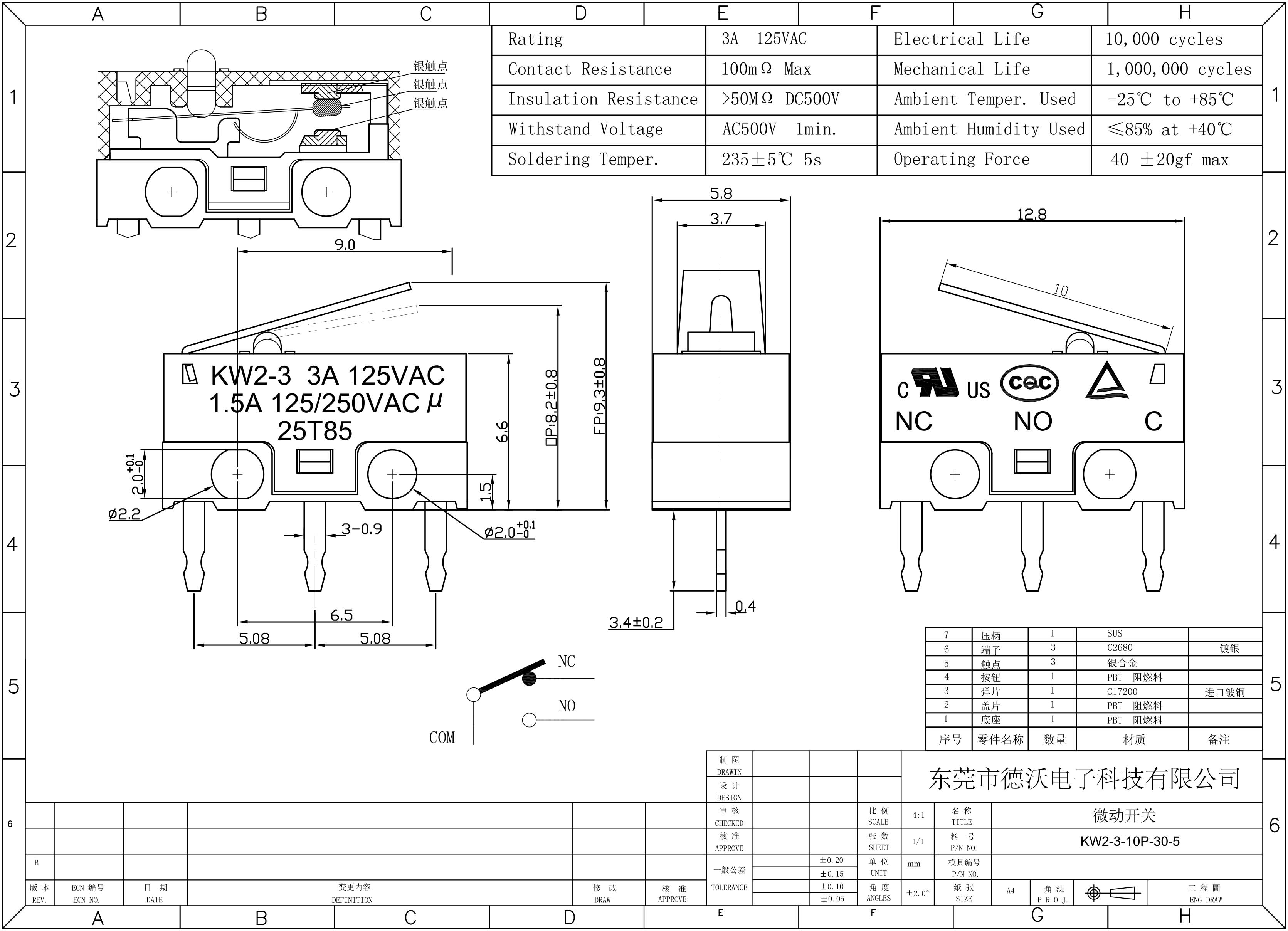 KW2-3-10P-30-5小型微動(dòng)開(kāi)關(guān)