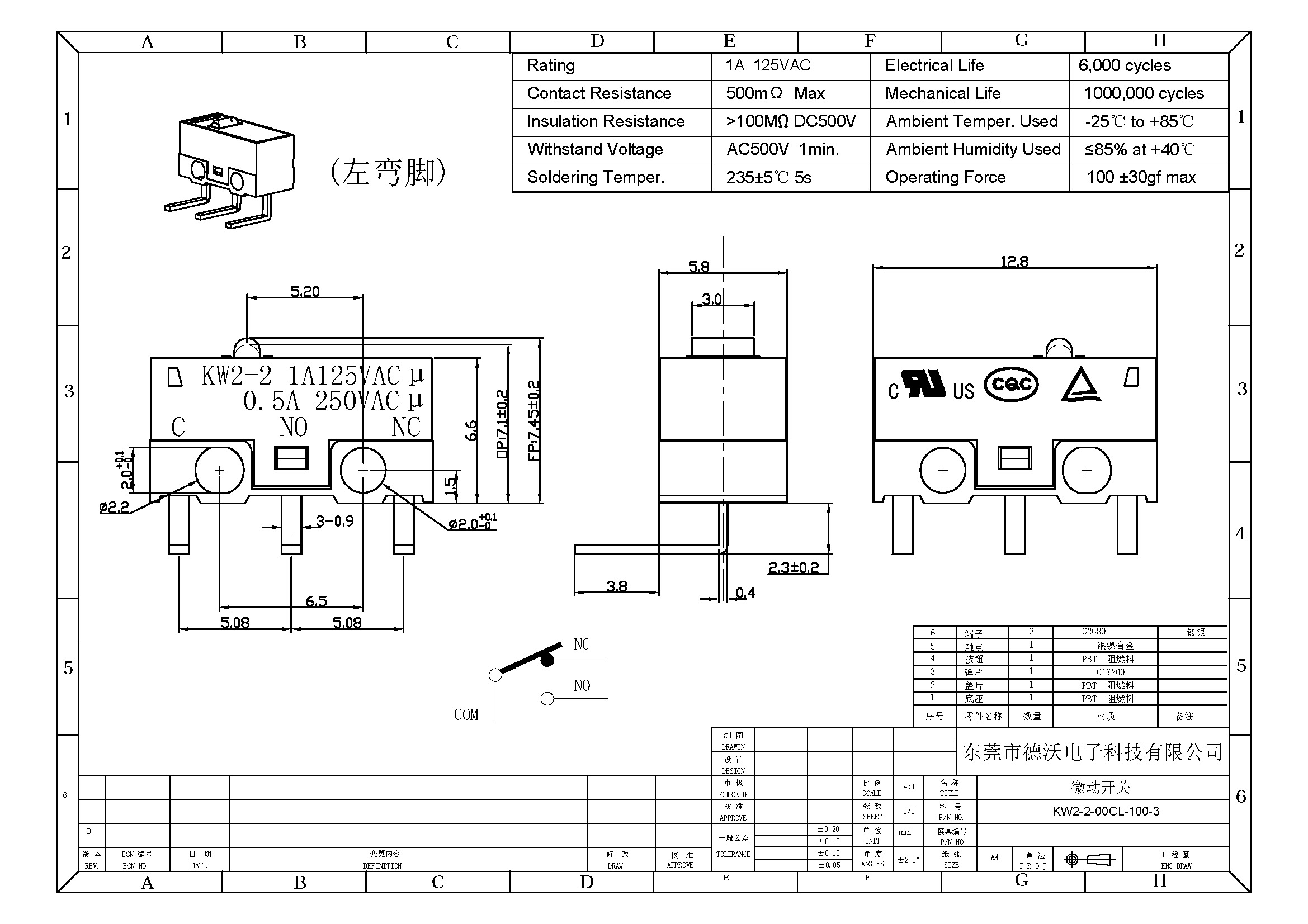 2.觸點材質(zhì):銀鎳合金.